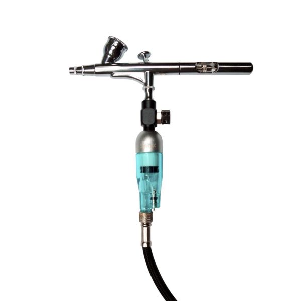 当製品はSparmaxオリジナルデザインで軽量の水分除去フィルターです。集められた水分は、バネ仕掛けのリリースバルブを押すことで簡単に廃棄できます。エアブラシの下に取り付けるとグリップとしても機能し、人間工学に基づいたデザインのため疲れ軽減に繋がります。