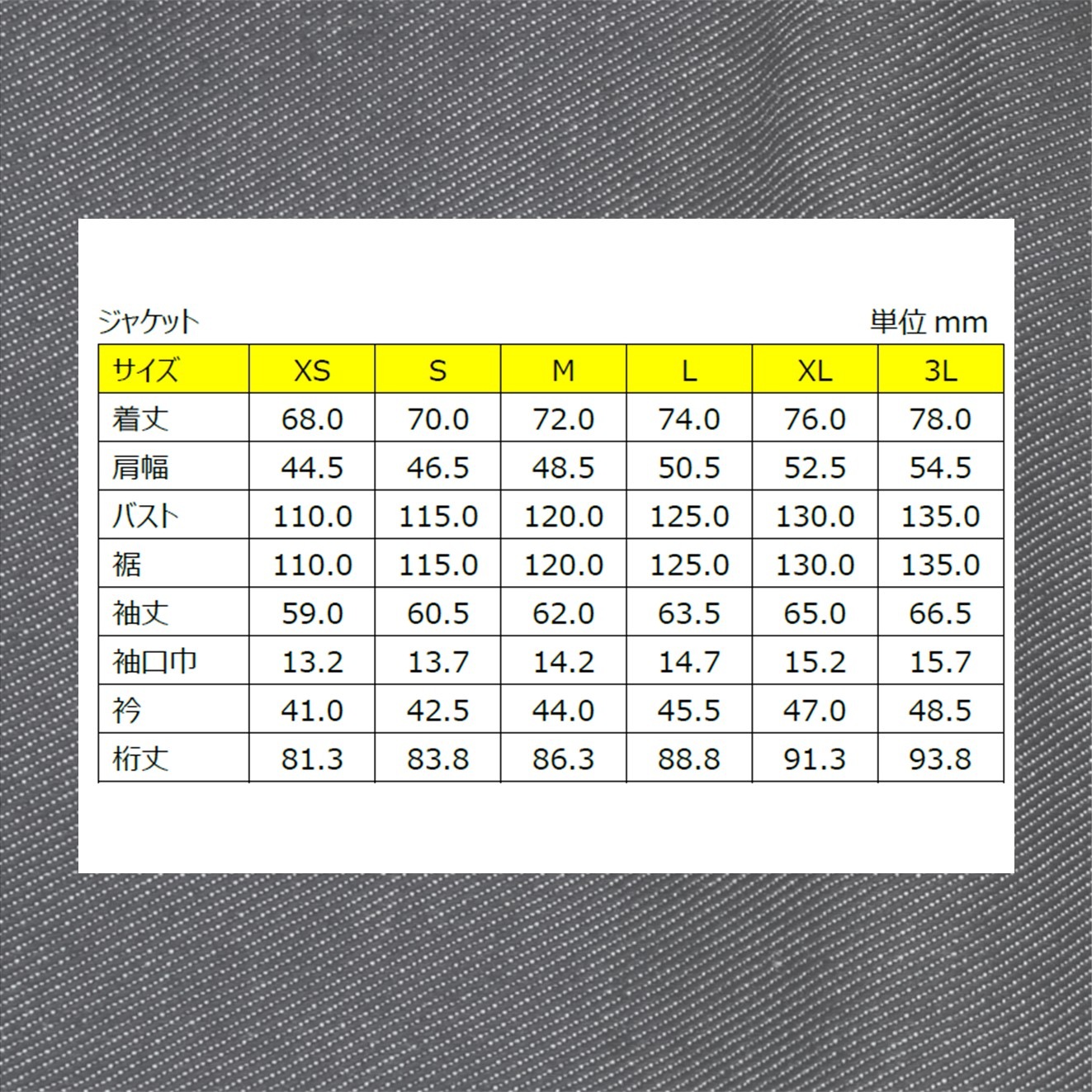 XS~3Lまでの6サイズ展開。